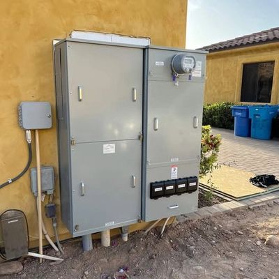 Electric panel upgrade in Phoenix Quality Contractor Services licensed electricians are full service electrical contractors. Residential as well as commercial electrical contractors. We've been changing out hundreds of electric panel changes, 3 and 4 meter packs and commercial service sections over the past few years. We mastered the skills needed to retrofit on apartment complexes. It's always a challenge getting the 3 and 4 packs modified to accept all the different wire entry configurations.